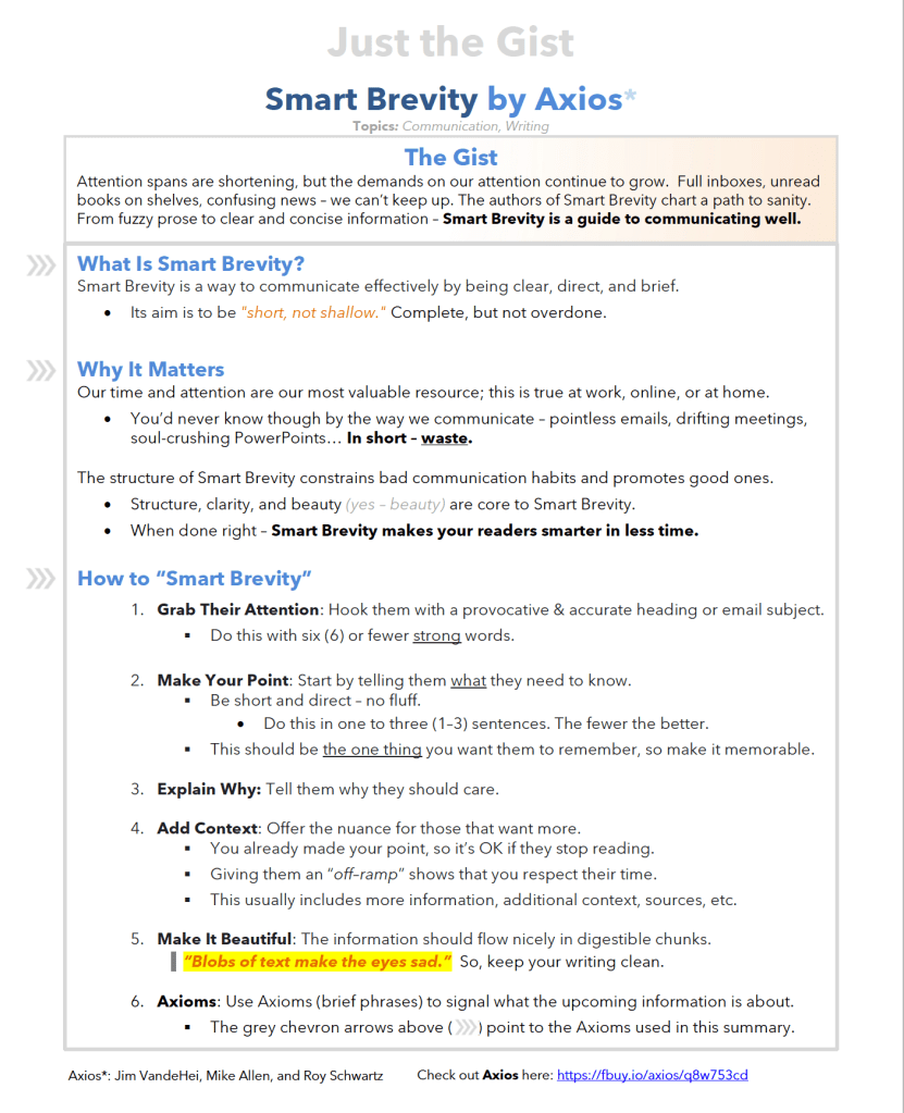- When done right – Smart Brevity makes your readers smarter in less time.